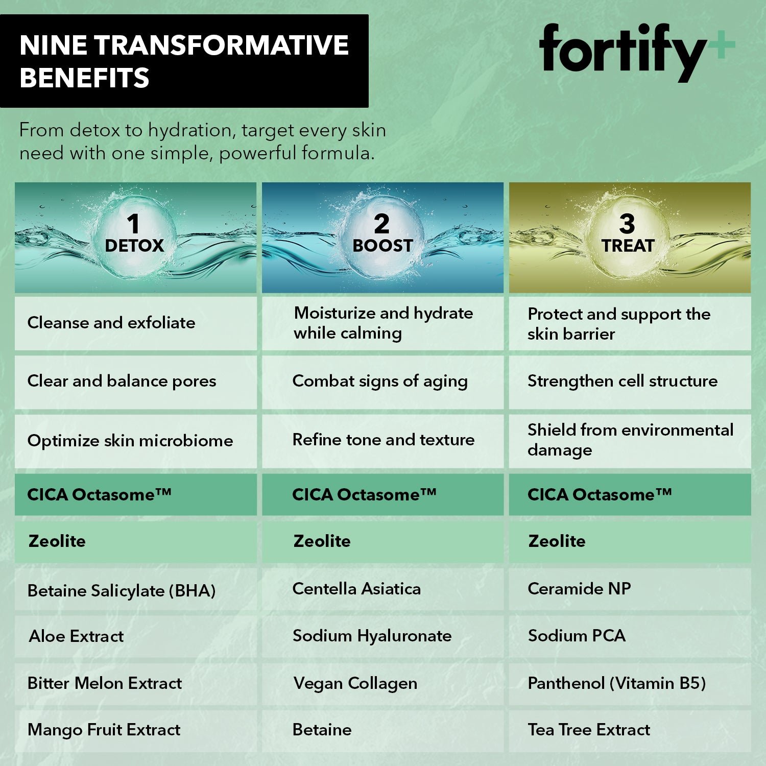 - CERTIFIED CLEAN + CRUELTY-FREE: Fortify only uses the highest quality ingredients. No parabens, sulfates, or other harsh components. Noncomedogenic, non-GMO, vegan, and made with clean ingredients. Made in Korea.
